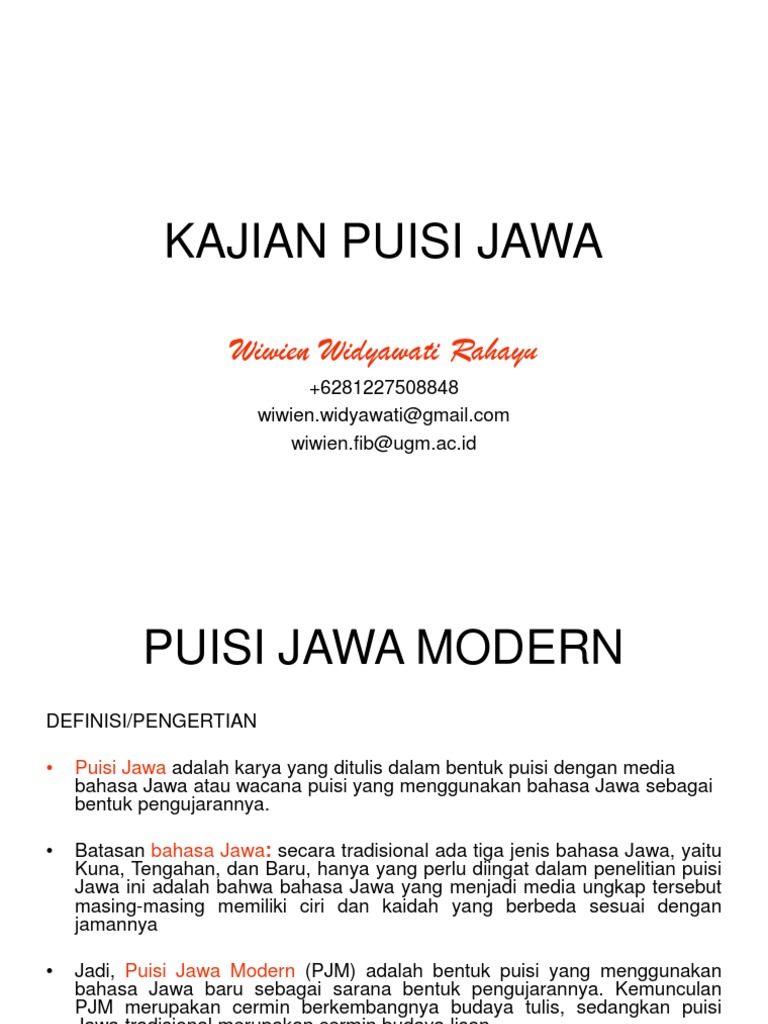 Koleksi 8 Puisi Jawa. Platform ini merupakan media penerbitan multisegmen yang memfasilitasi dan memotivasi pendidik, peserta didik lp ma'arif nu serta masyarakat umum untuk memahami, menjiwai dan mencintai ahlussunnah waljamaah annahdliyah serta mengembangkan kemampuan literasi. Maarifnujateng.or.id merupakan media siber resmi milik lembaga pendidikan ma'arif nu jawa tengah. Jul 06, 2015 · puisi. Jun 23, 2021 · puisi rock adalah karya sastra yang meluapkan kemarahan penulisnya. Banyak daripada puisi melayu tergolong dalam genre tradisional yang muncul dalam zaman sebelum berkembangnya tradisi tulisan pencetakan.